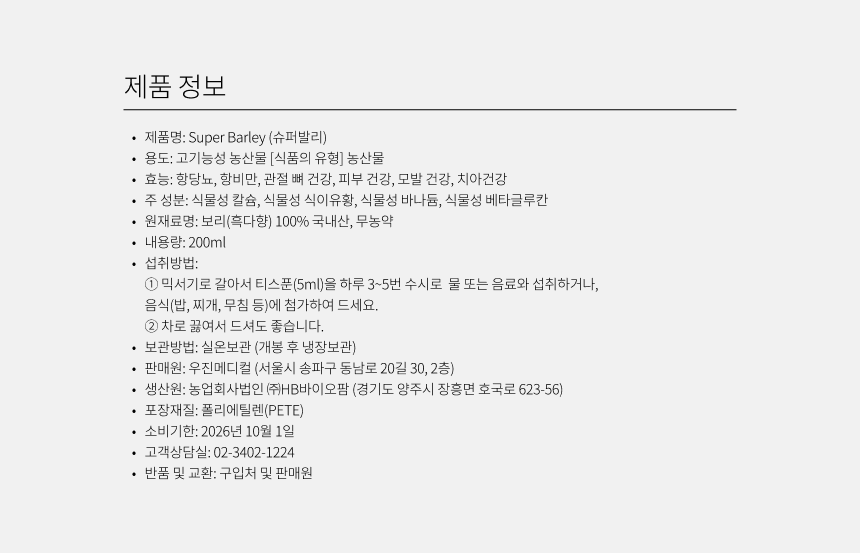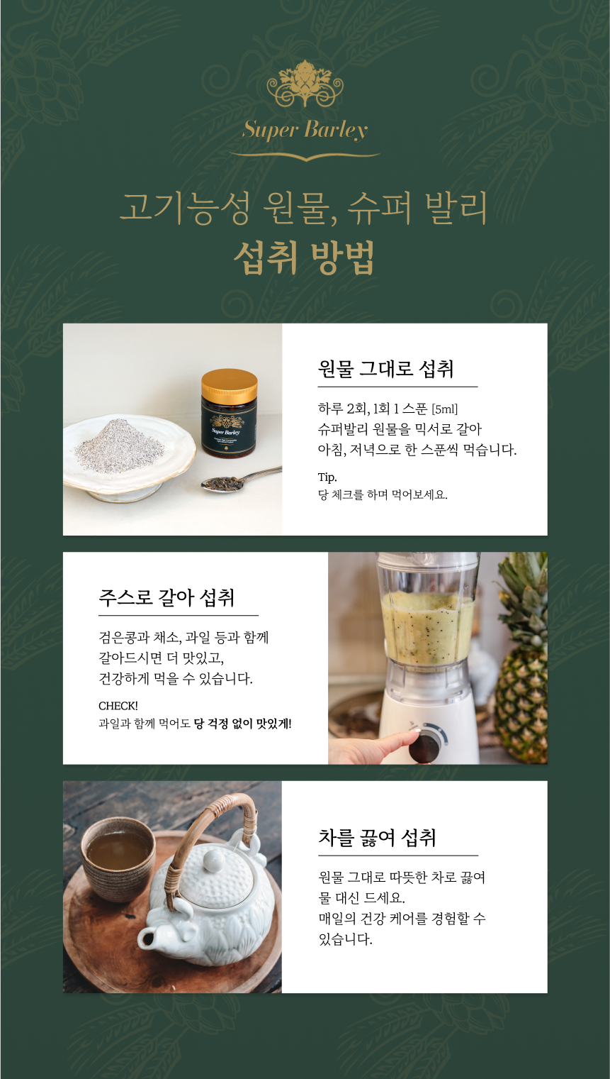 슈퍼발리(Super Barley) 천연 원물에 첨단 기술력을 더한 진정한 프리미엄